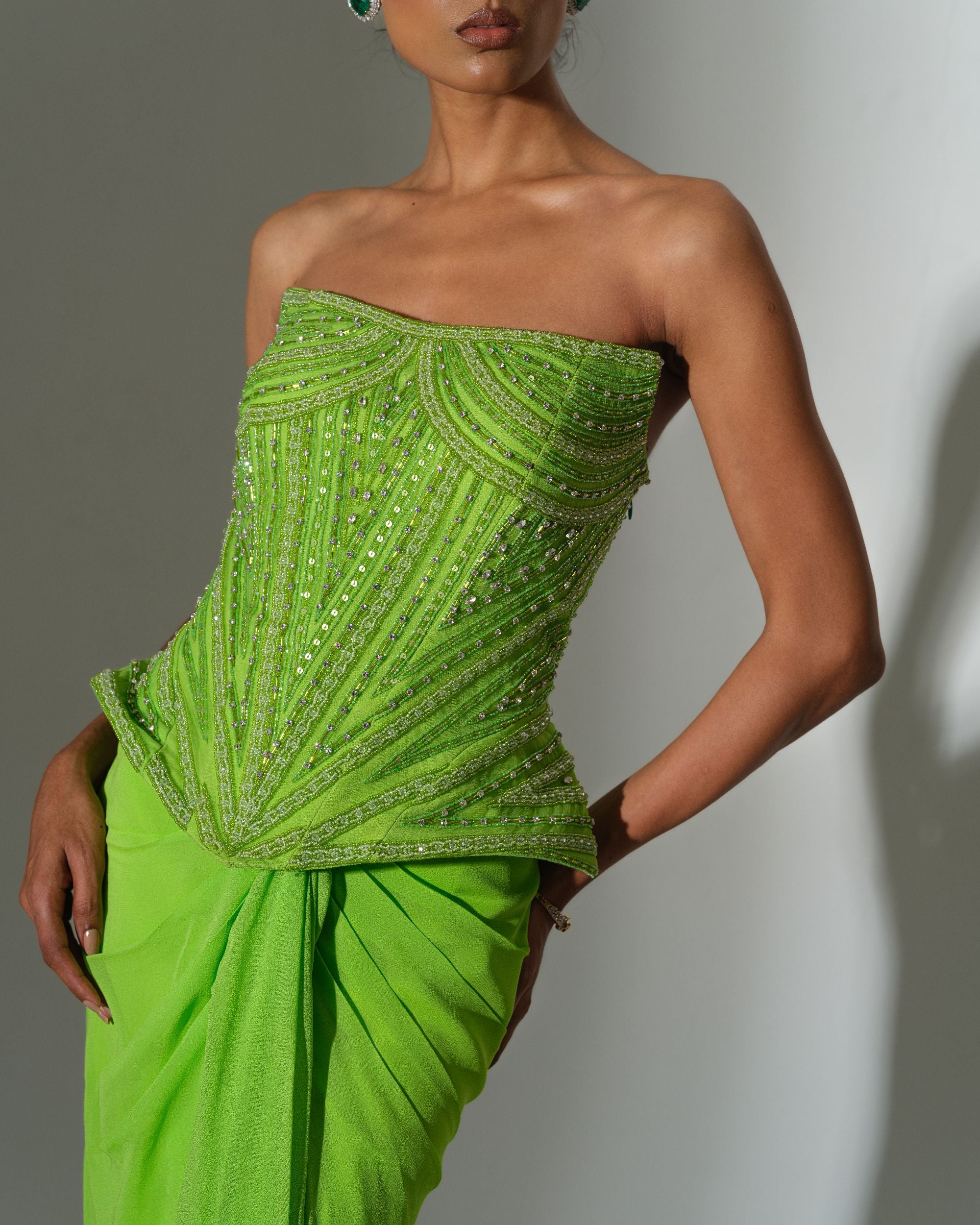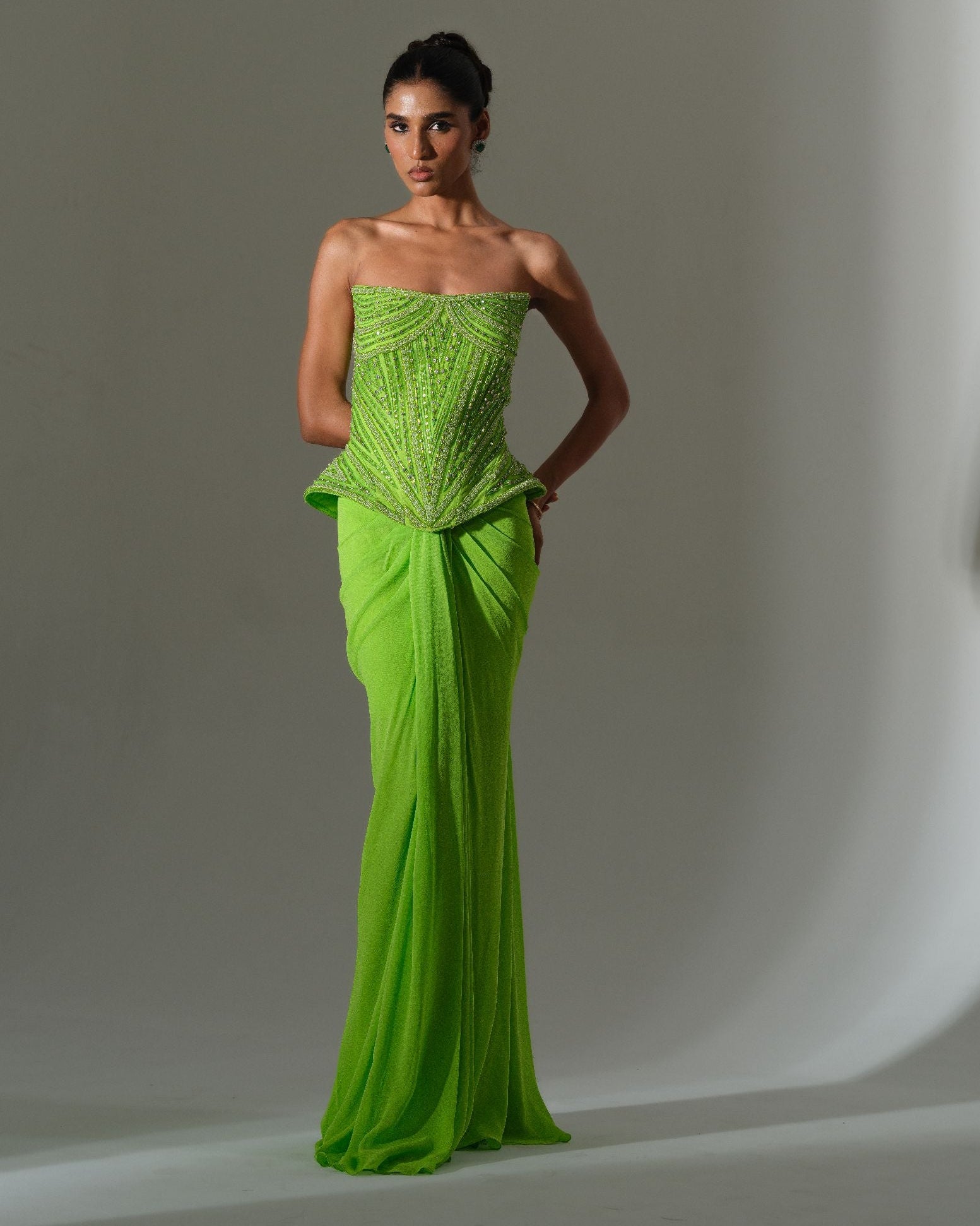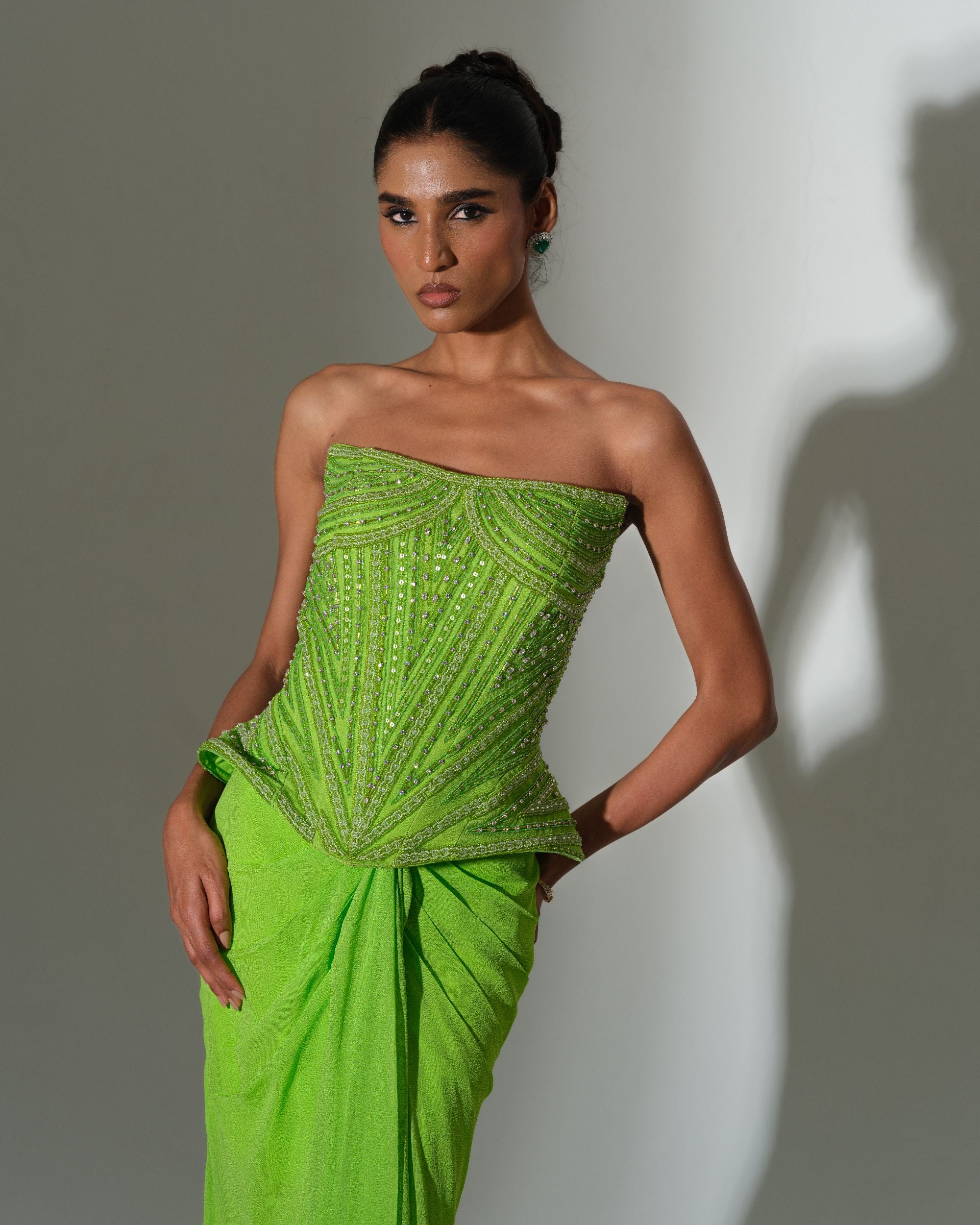 Lime Draped Saree Set