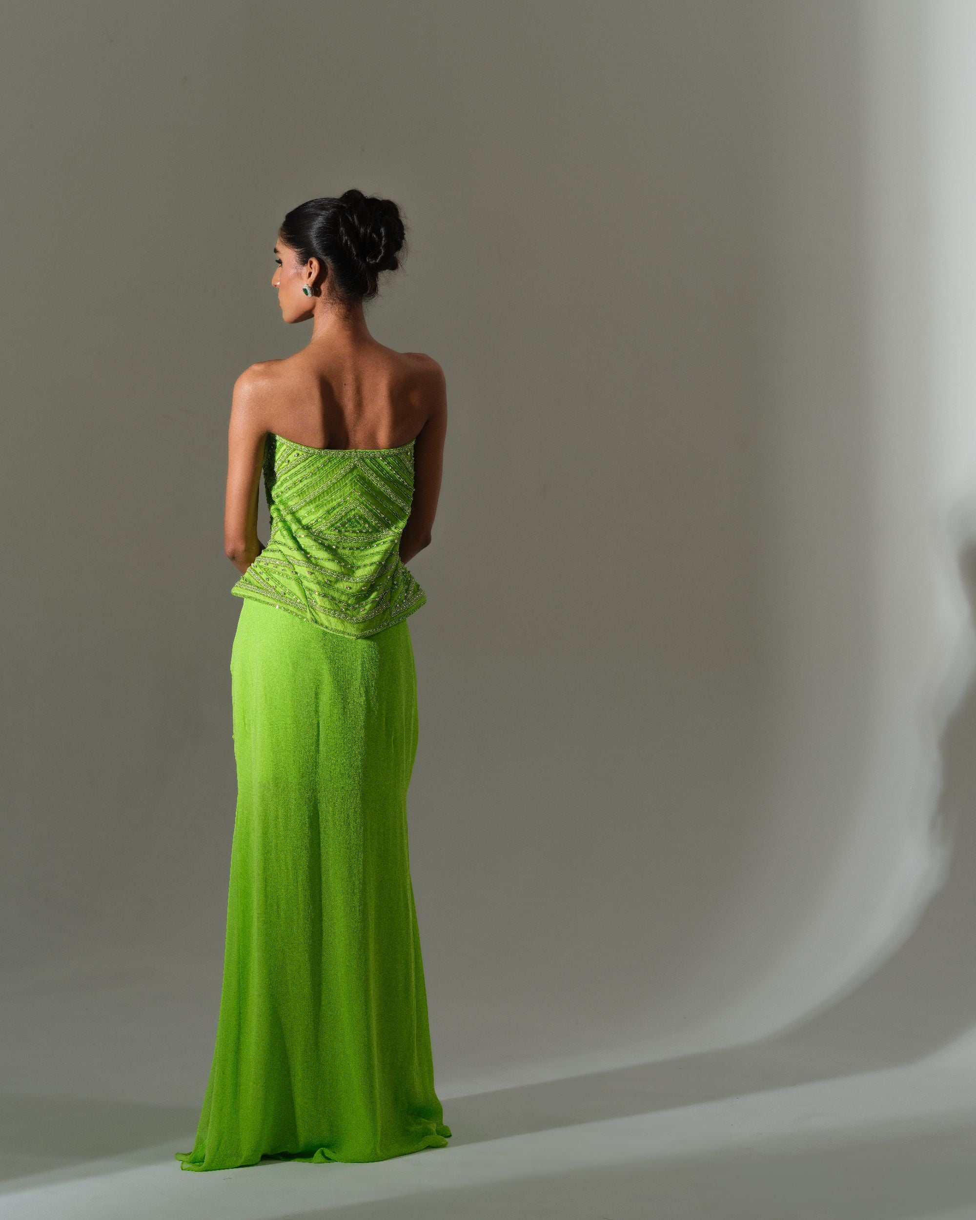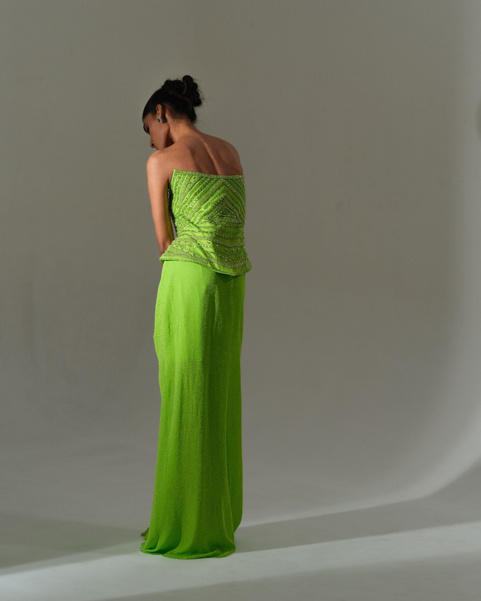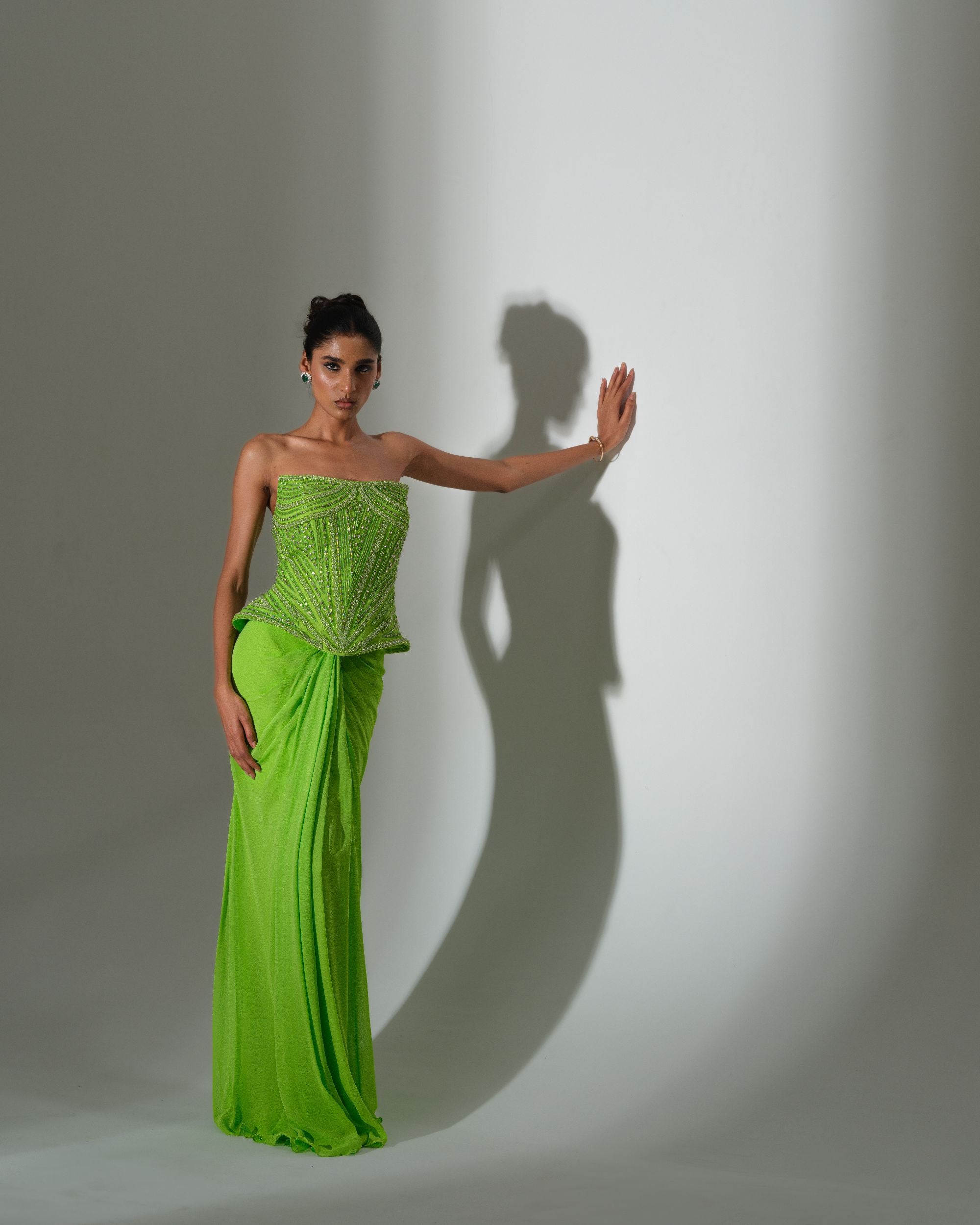 Lime Draped Saree Set