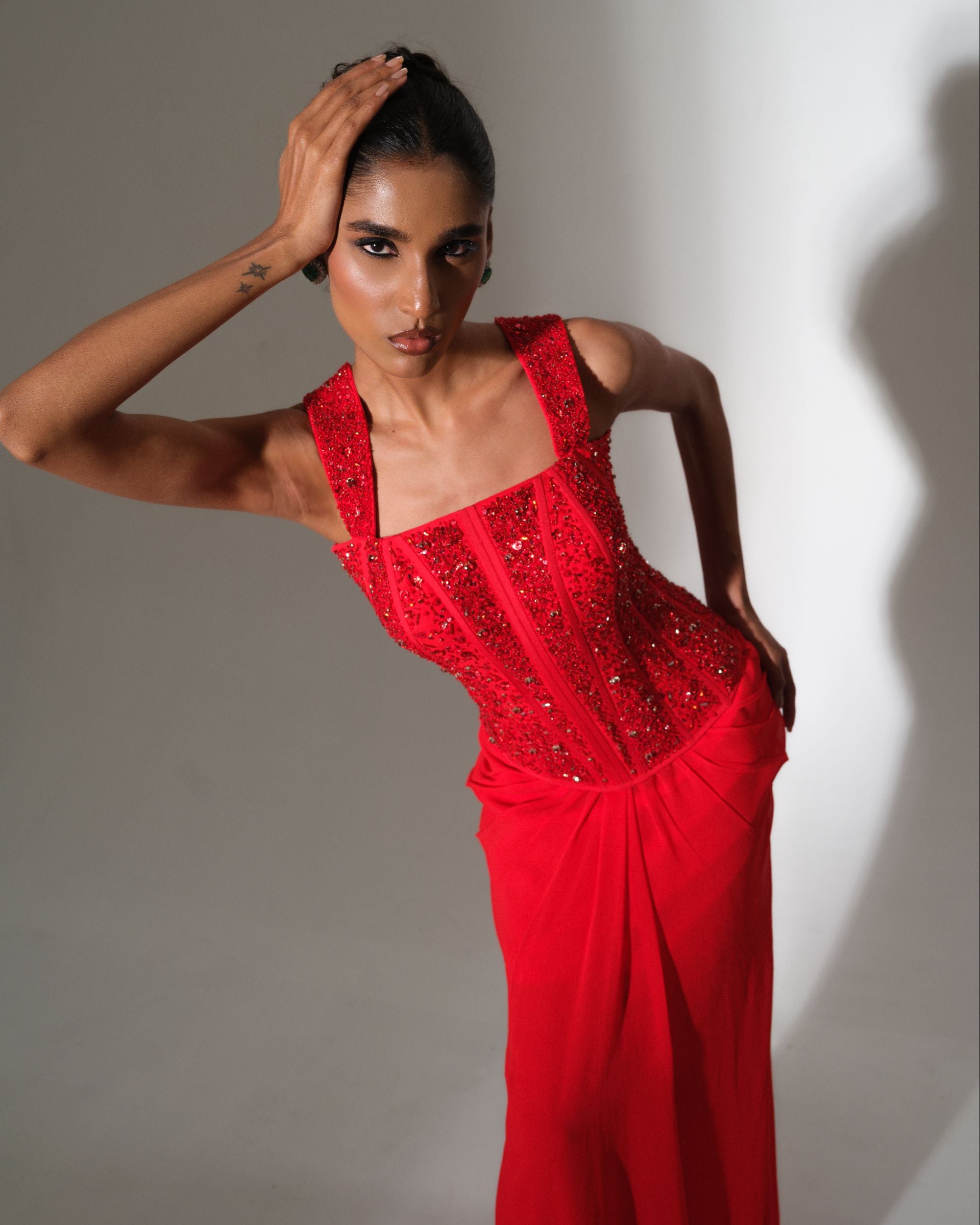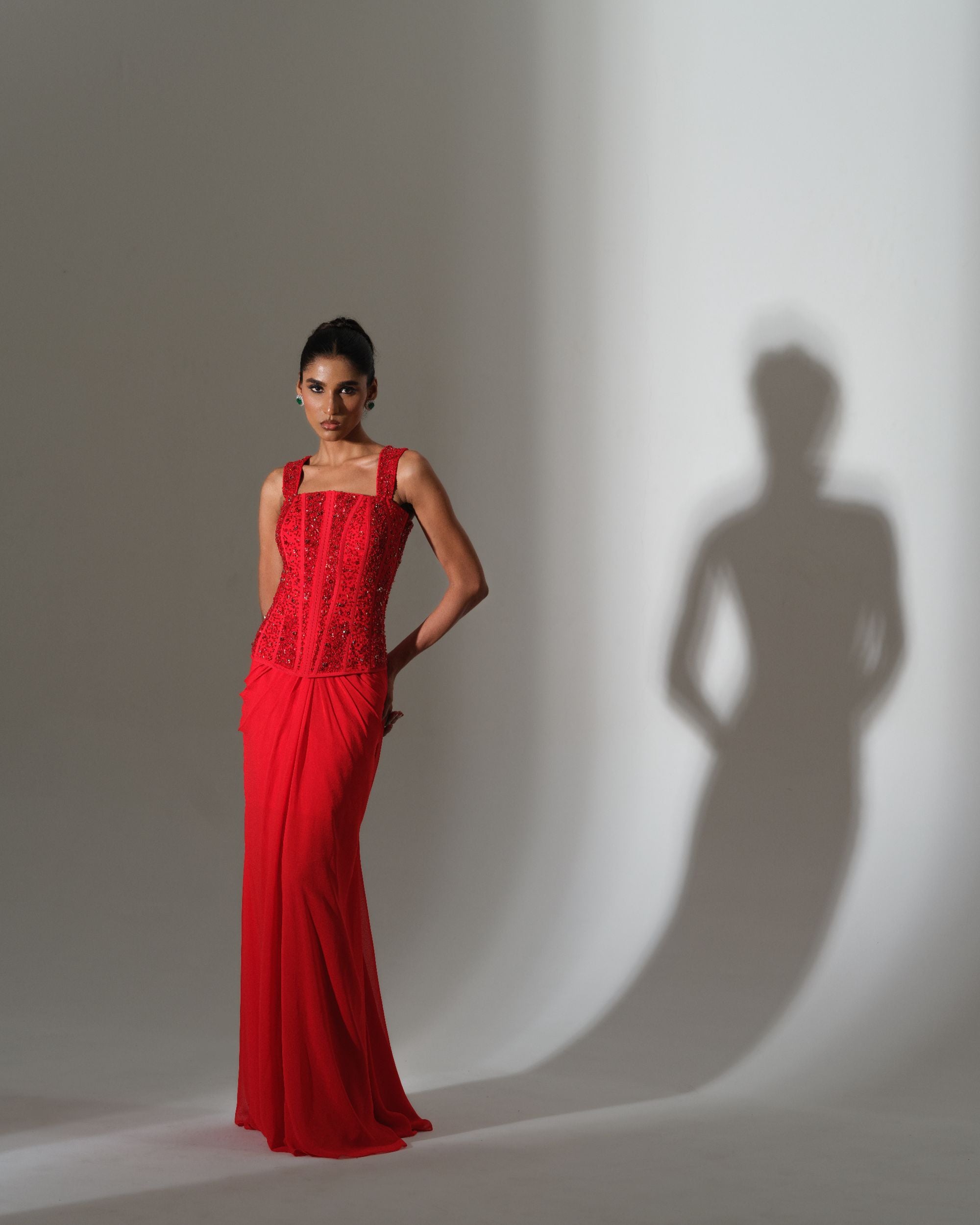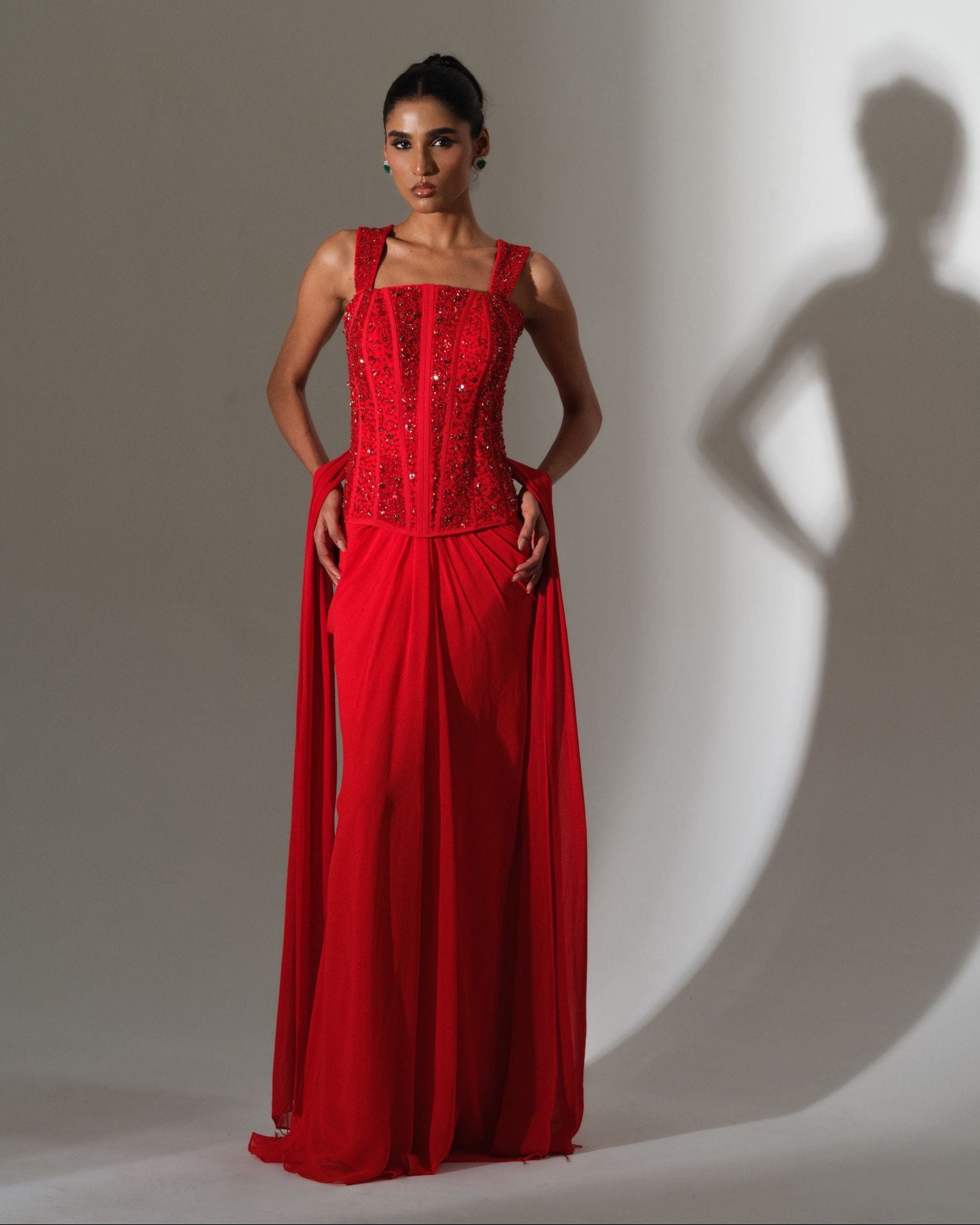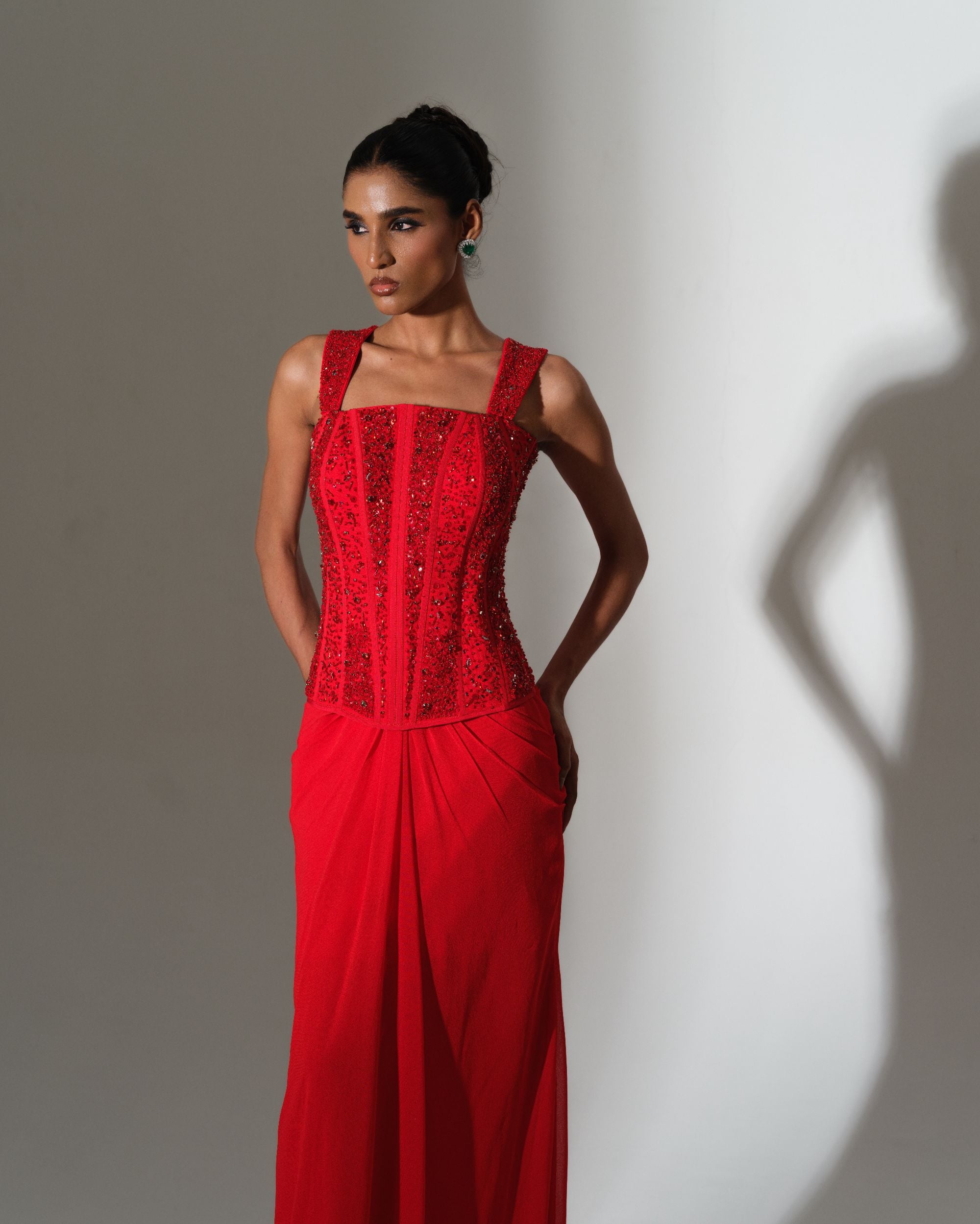 Scarlet Draped Saree Set