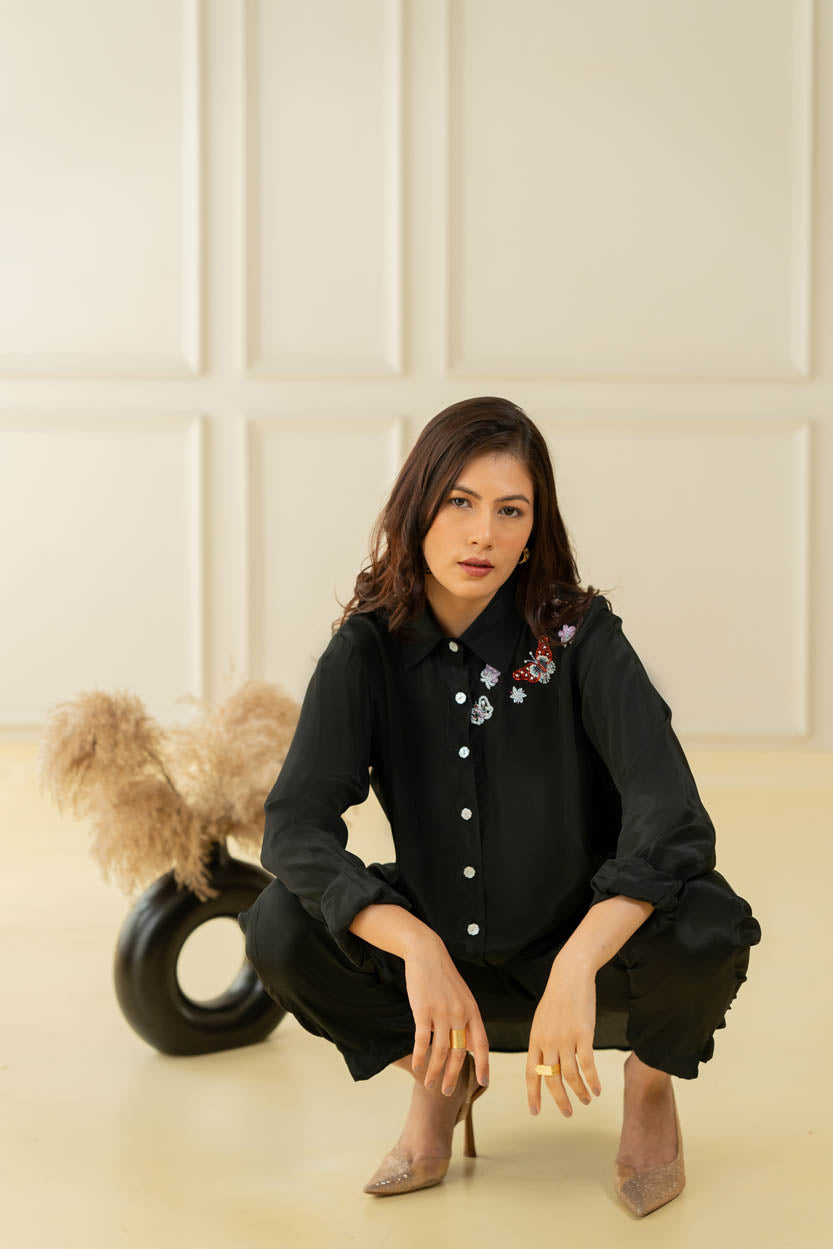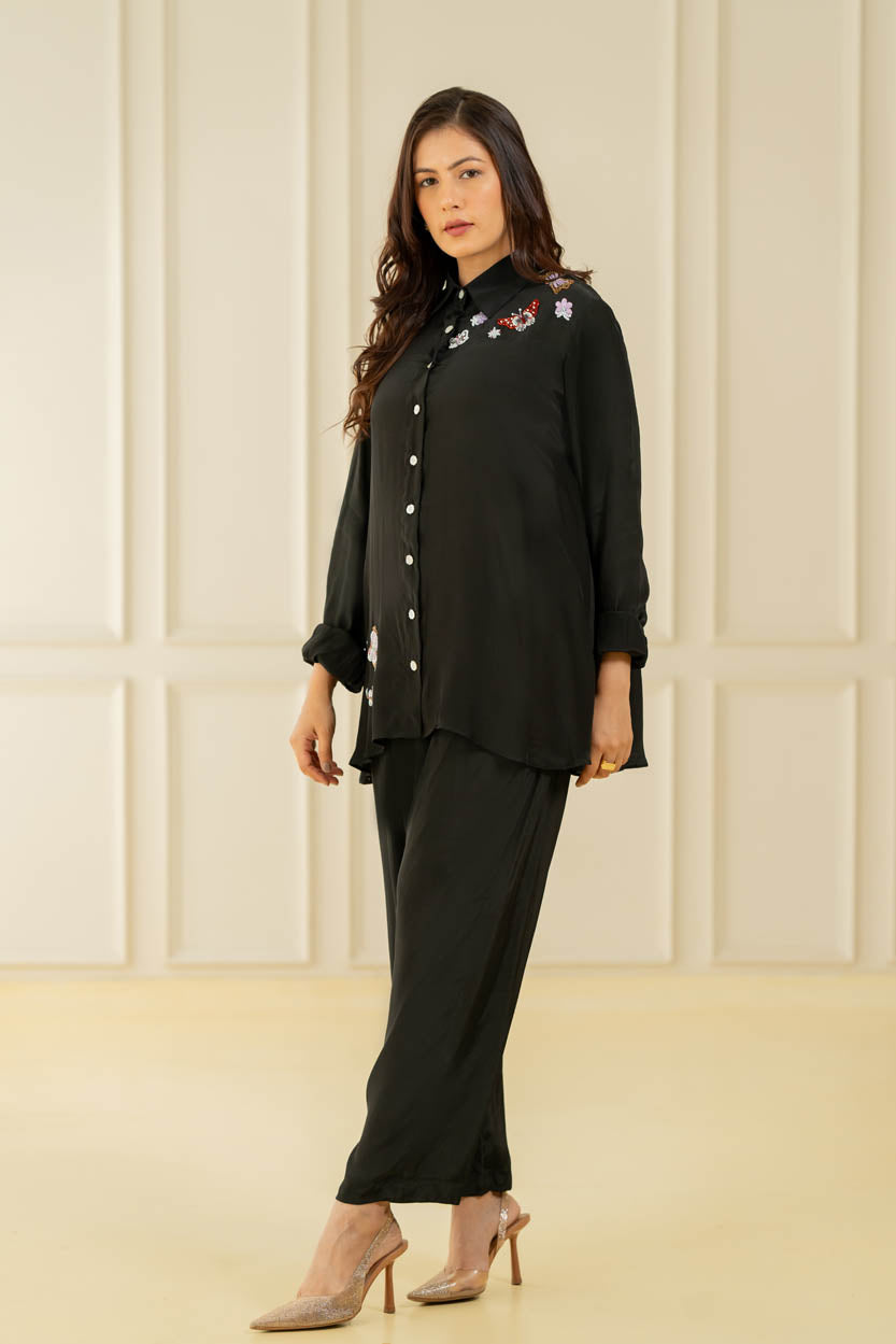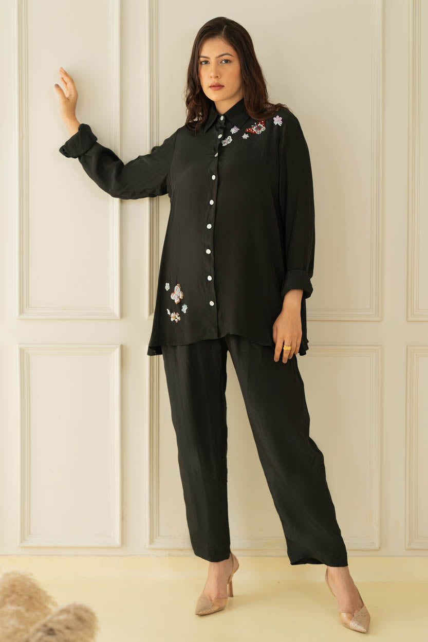 Experience effortless elegance in our intricate hand-embroidered coord set, crafted in breezy, natural crepe fabric for a look that’s as light as it is luxurious.