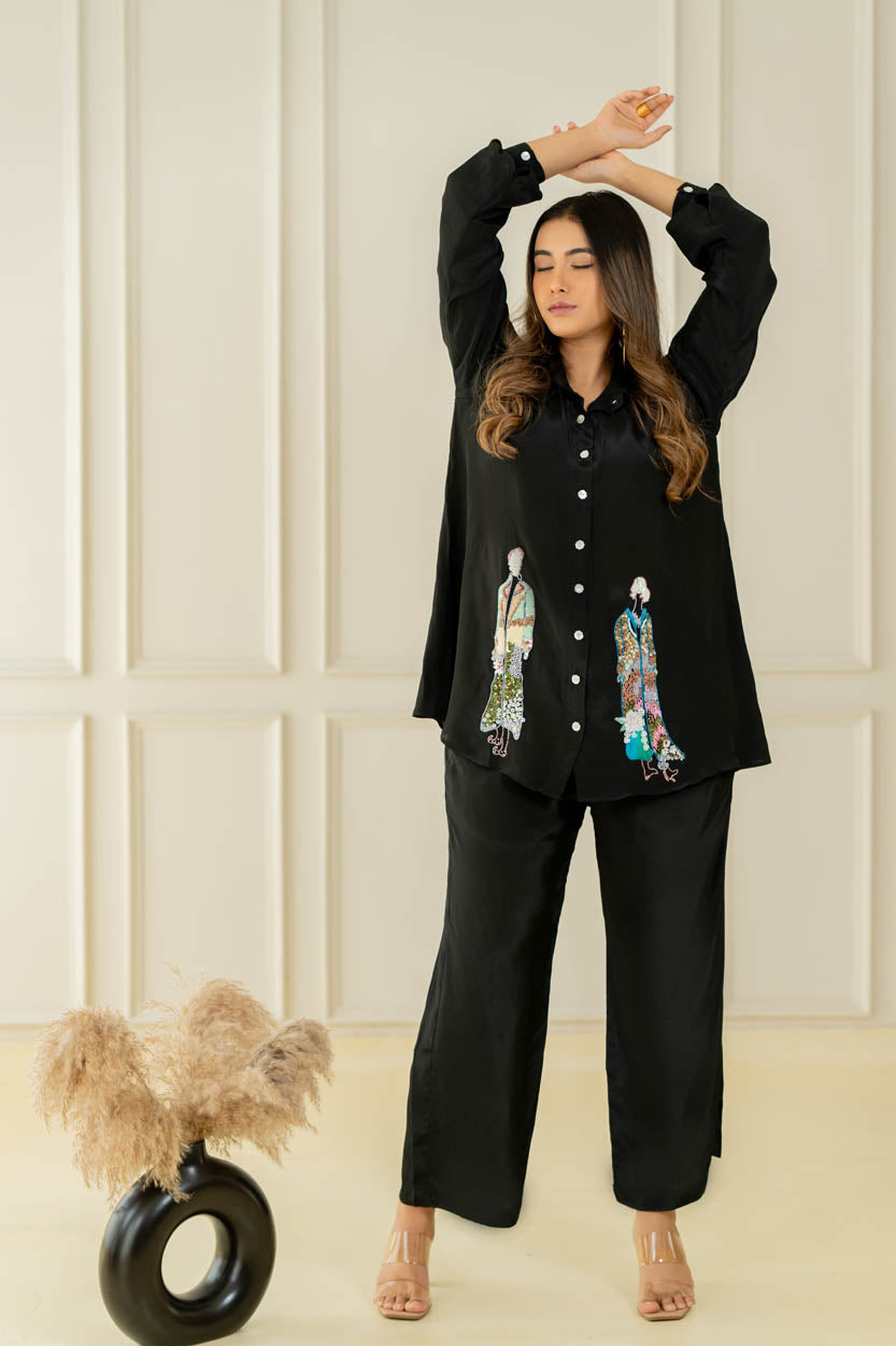 Experience effortless elegance in our intricate hand-embroidered coord set, crafted in breezy, natural crepe fabric for a look that’s as light as it is luxurious.