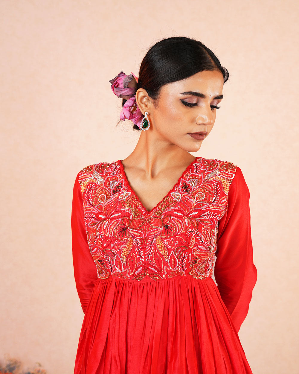 Red Anarkali set